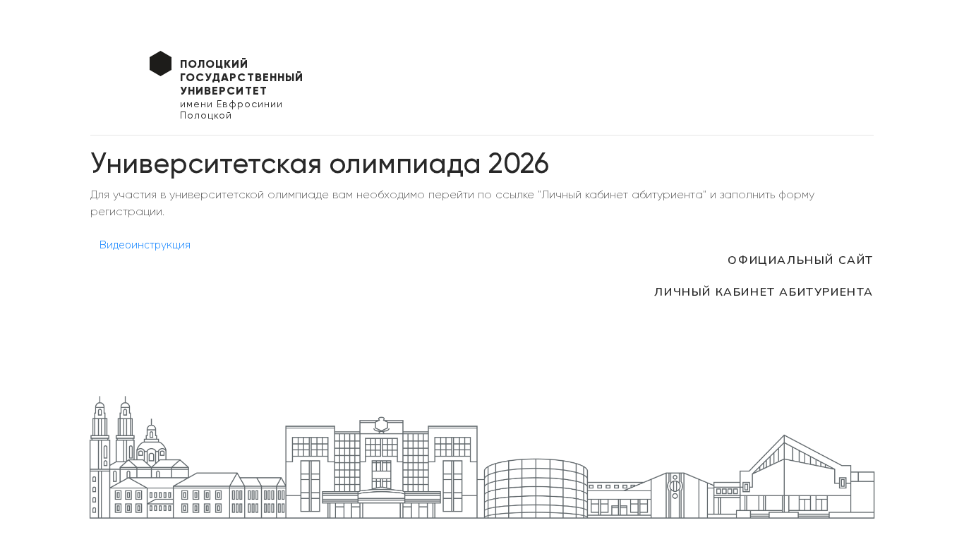 | AI-анализ | The portal polotsk.state.university.by is the official website of Polotsk State University in Belarus. It provides information on the University Olympic 2026, including a video instruction on how to register for the event in the 'Personal Cabinet for Applicants'. The website uses the keywords 'Polotsk State University', 'home', 'video instruction', 'personal cabinet', 'applicant', and 'registration form'. The domain name is olympiad.psu.by. The video instruction is not accessible to browsers that do not support the video tag. |