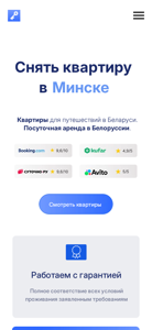 | AI-анализ | The website is an apartment rental service based in Minsk, Belarus. It offers short-term and long-term rentals for travelers, business trips, or vacations. The apartments are described as clean and well-maintained. Keywords related to booking, renting, and contact information are prevalent. The website claims to have been maintaining their service for 7 years with 100% positive reviews, and the owner is listed as a Superhost on Airbnb from 2017 to 2021. The apartments are fully furnished and equipped for comfortable living. The website provides a full packet of documents for both tourists and business travelers. Pricing starts at 100 BYN/day and 50 BYN/hour. Potential guests can view and book available apartments online, with options for one to eight guests. If no suitable options are found |
