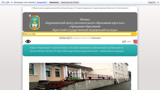 | AI-анализ | The website is the official site of the Baranovich Center for Adult Education, a branch of the Brest State Medical College in Belarus. It provides information on the center's activities, achievements, and significant events. The site offers electronic application procedures for citizens and legal entities, including a schedule for citizen meetings and relevant legal documents. Additionally, the website details the process for diploma verification, questions for qualification confirmation, and practical skills assessment. The main focus of the site is the announcement of professional attestation for medical workers with intermediate medical education, as per the decree of the Ministry of Health of the Republic of Belarus. The site also features images and information on the 25th Anniversary of the Improvement Program and the Year of Quality. Contact information for the Filial and the college are provided, along with administrative procedures and various announcements. |