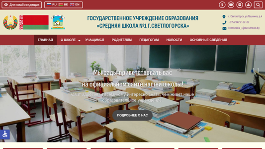 | AI-анализ | This website is the official site for Middle School No.1 in Svetlogorsk, Belarus. It provides information for students, parents, and teachers about the school, including news, announcements, schedules, and educational materials. The site features a modern design with a user-friendly interface and is available in Russian, Belarusian, and English languages. The homepage includes sections for school news, announcements, and links to various educational resources. The site also includes a search function and contact information for the school. The domain name, sv1schools.by, indicates that it is a Belarusian .BY domain. |