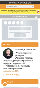 | AI-анализ | The website of photographer Sergey DiSHUk in Mozyr, Belarus offers landscape, interior, and reportage photography, as well as the creation of 3D panoramic tours in Mozir and the Homel region. The site features the latest news, articles, and portfolio, with a focus on 360-degree panoramas and virtual tours. The photographer is certified by Google Street View and is an expert and promoter of Pano2VR/PTGui. The site does not contain ads, banners, or distracting pop-ups, making for an enjoyable browsing experience. The photographer's TikTok profile can be accessed from the site for behind-the-scenes content, and visitors can subscribe for updates. The photographer, named Sergey, is a versatile photographer who shoots landscapes, animals, and reportages of various city events. He is |