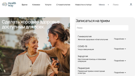 | AI-анализ | The web project healthwaylife.by is a medical clinic website that provides information about various medical services, doctors, and clinics. The site offers online appointment booking for various medical specialties, including gynecology, pediatrics, and surgery. Users can select medical services, choose a doctor, and schedule an appointment. The site includes sections for news and articles, and caters to multiple cities in Belarus, such as Minsk, Brest, and others. The most frequently used words on the site are related to making appointments, doctors' names, and contact details. |