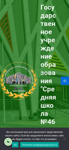 | AI-анализ | This website is the official site of State Educational Institution "Mogilev Secondary School No. 46". The menu and switcher appear frequently on each page of the site with the contact information for the school, including two phone numbers for +375 (222) 62 66 12. The site features sections on the school's mission, work schedule, leadership, engineering-technical center, privacy policy, innovation projects, and administrative procedures. There are also sections for students, parents, and a parents' council, as well as information on enrollment, safety, and school life. The site is organized with a main menu and a switcher to navigate between sections. The school year schedule and important documents are accessible, along with information on various events and activities. The site is designed for the Belarusian .BY domain and is titled "Государственное у |