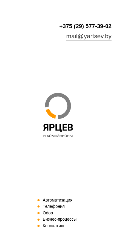 | SEO-лексика | ярцев компаньоны 375 577-39-02 mail yartsev автоматизация телефония odoo бизнес-процессы консалтинг |