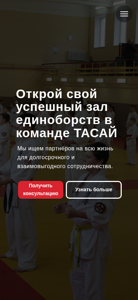 | AI-анализ | The web project "Partner Network of Sports Clubs TASAY" is a network of successful sports clubs under the brand TASAY. It offers a proven methodology for Karate Kōkushin-ryū and full support throughout the process. Learn more about our franchise! The website contains information about the club's addresses, contacts (+375292217444), and the life of the club. The project aims to open a profitable and long-term partnership with a successful martial arts club. The club has over 40 comfortable training halls in six districts of Minsk and the Minsk region. Over 3700 children have become stronger, braver, and more resilient through its trainings. Nearly 1400 gold and silver medals have been won by its students at competitions. Over 15,0 |