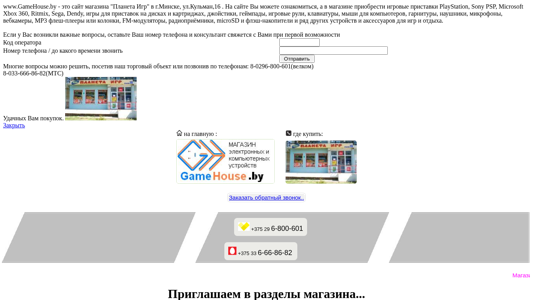 | Адрес | карманные консоли, аксессуары и игры к ним., www.GameHouse.by - это сайт магазина "Планета Игр" в г. Минске, ул. Кульман,16 |