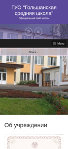 | AI-анализ | The web project is an official website for the educational institution "Golshanskaya Srednya Shkola" (Golshanskaya Middle School). The title of the webpage is "ГУО 'Гольшанская средняя школа' — Официальный сайт школы" which translates to "State Educational Institution 'Golshanskaya Middle School' — Official Website of the School". The description provided does not contain any specific information about the content or purpose of the website. The keywords for this webpage are not mentioned. The top_words data is not provided. The website uses the .BY domain for Belarus. The website features various images and includes a button for embedding Office Viewer documents. It also includes a section for sharing buttons and appears to use the Jetpack plugin. The design is centered with a border and a title, and includes a blue |