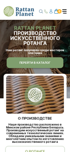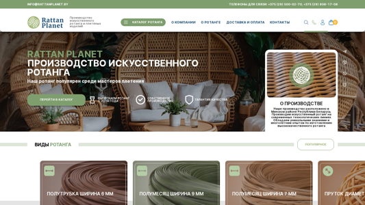 | AI-анализ | --- The website RATTAN PLANET is a production and sales platform for artificial rattan, based in the Miniski region of Belarus. The company has been producing artificial rattan since 2014 and offers a range of products including half rounds with widths of 7mm and 9mm, rods with diameters of 3mm and 4mm, and half tubes with a width of 6mm. The website provides detailed information on the various types of rattan available and includes contact information for inquiries. The production process takes place on modern technological lines, with the company boasting unique knowledge and extensive experience in creating high-quality rattan. Rattan Planet's artificial rattan is a popular choice among weavers and is more durable and long-lasting than natural rattan. It is used in the production of various items such as furniture, baskets, |