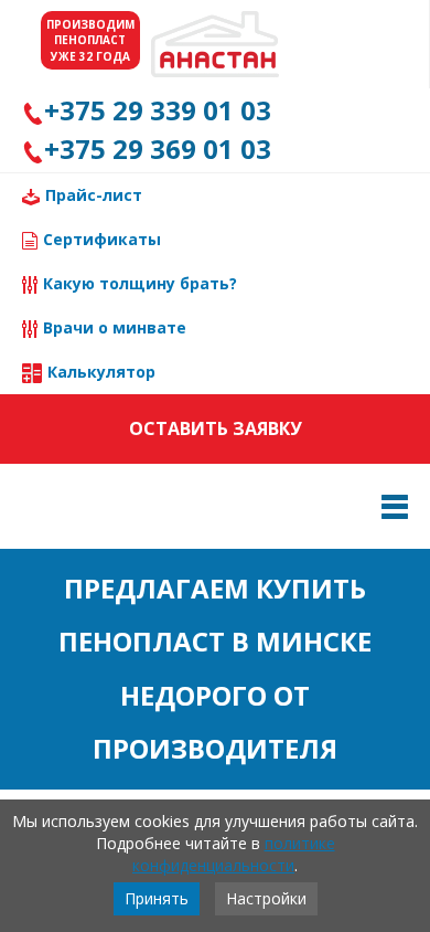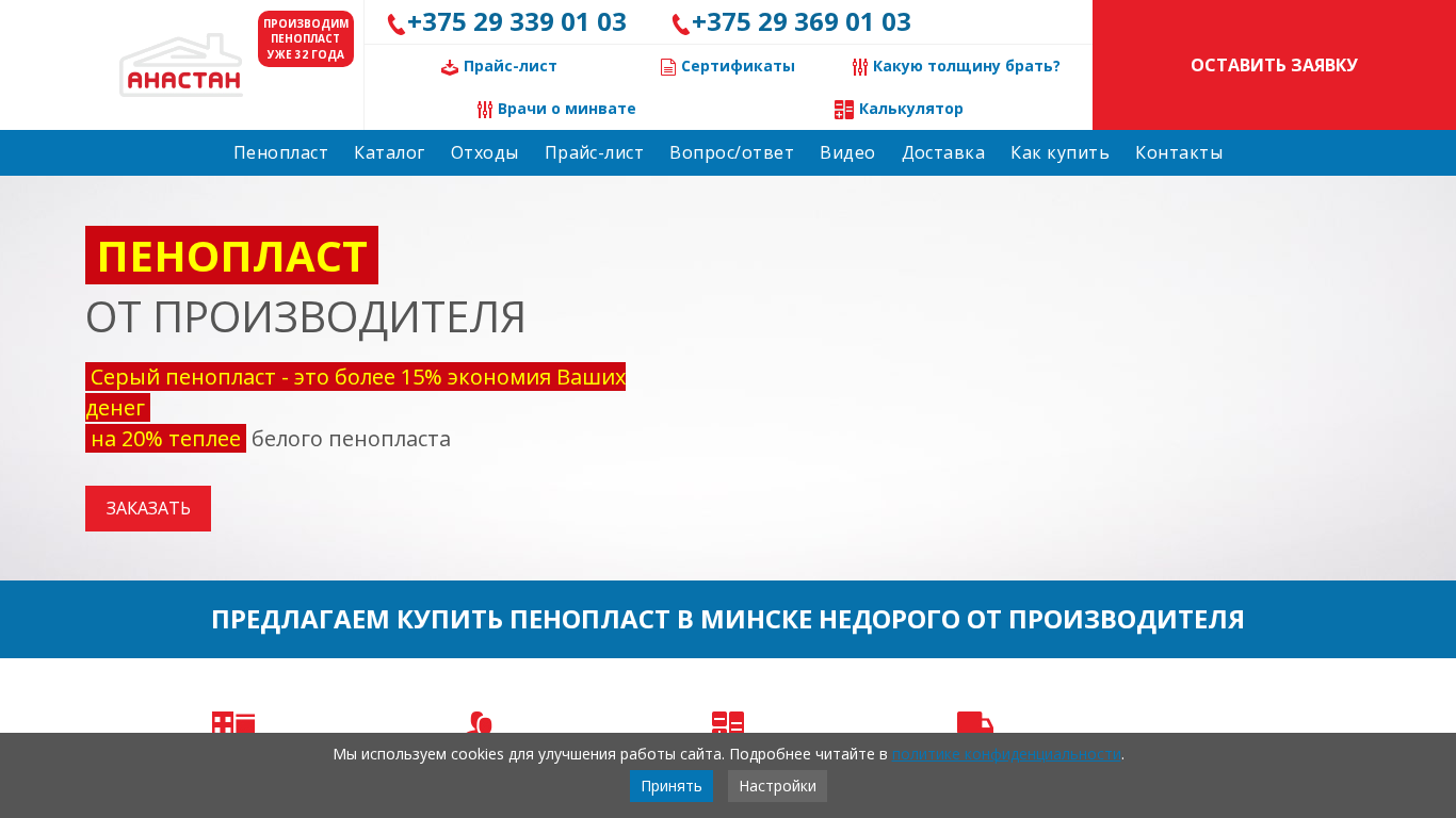 | Название / Заголовок | Пенопласт купить в Минске недорого от производителя Анастан |
