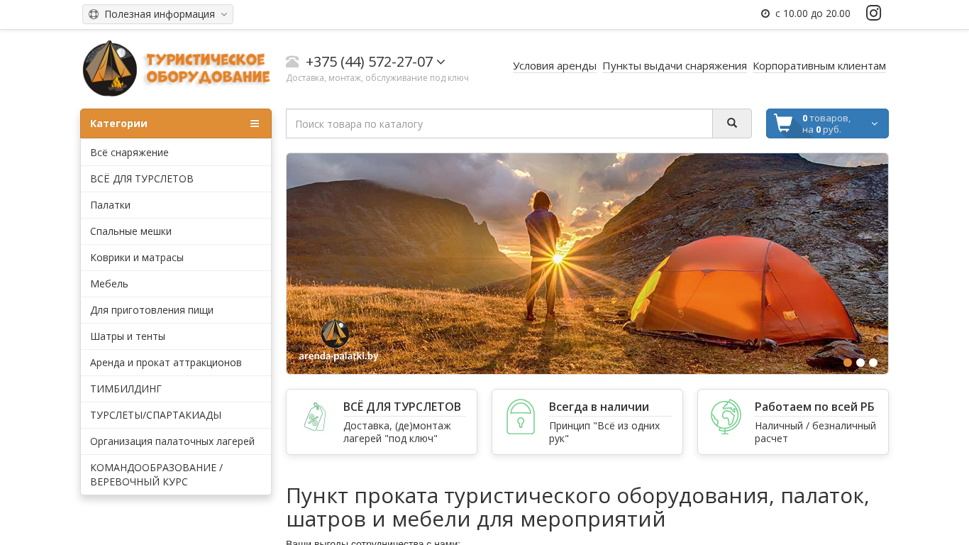 | Название / Заголовок | Пункт проката туристического оборудования, шатров и мебели для мероприятий |