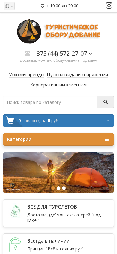 | AI-анализ | --- The website is a rental service for tents, shelters, furniture, and tourist equipment in Minsk and Belarus. It offers tent rentals, sleeping bags, mats and chairs, furniture for cooking, tents and canopies for rent or sale, and organization of camping and sports events. The website also provides tips on camping equipment repair and selection. Services include delivery, installation, and maintenance under contract. The website also offers corporate packages, a wide range of equipment for tourists, and discounts or free additional equipment with large orders. The contact information includes phone numbers for ordering and inquiries, as well as an email address. The website is available for events, event organizers, unions, and venues. A new offer includes tent and furniture rental for events with delivery and installation. Popular items for rent include a 3-person tent, an inflatable mattress, a folding chair, |