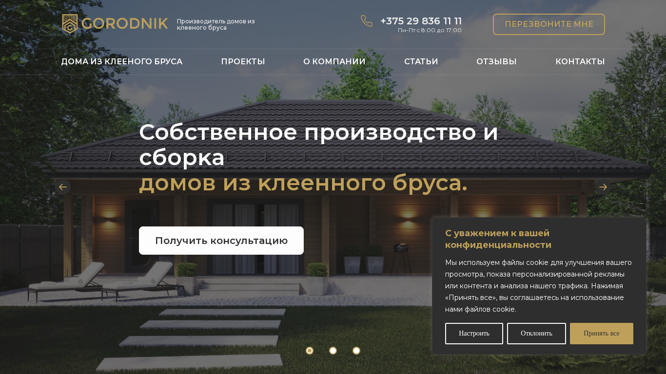 | SEO-описание | Наша компания GORODNIK занимается строительством домов из клееного бруса премиум качества с доставкой по РБ,РФ и Европе. Собственное производство и сборка. |