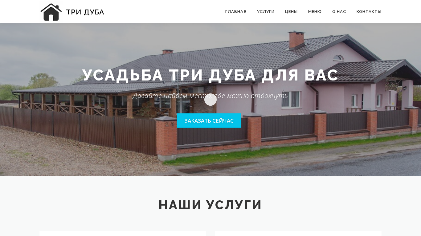| AI-анализ | The website "Три Дуба" (Tri Duba) offers various services, including a kitchen, halls for events, rental rooms for rest, and an active vacation in an agro-estate. The description mentions the availability of a menu, accommodation details, and information on additional services. The pricing for some offerings is provided upon request. The estate's kitchen is described as a calling card, and there are options for booking halls, rooms, and catering services. The estate's rooms are partially equipped with amenities like water, toilet, and a kitchen zone. The kitchen comes with appliances such as dishwashers, gas stoves, and convection ovens. The estate also offers the rental of a banquet hall, with pricing available upon request. Additionally, there are options for family vacations, corporate events, and karaoke rentals for events, with prices provided upon request. |