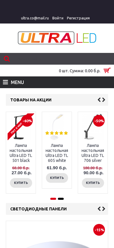 | SEO-описание | Лампочки светодиодные Ultra от производителя для дома и офиса. Вы можете купить светодиодные лампы, светильники потолочные, лампы настольные светодиодные, led лампы. Качество, гарантия, низкие цены. тел.+375(29) 69-69-829. |