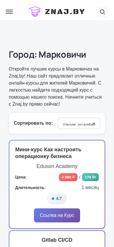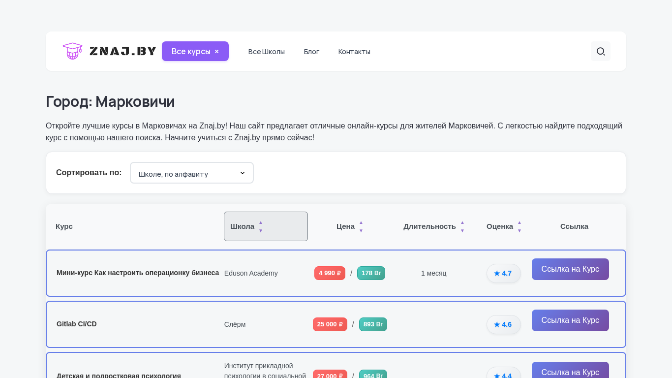 | Название / Заголовок | Онлайн Курсы Марковичи - Znaj.by |