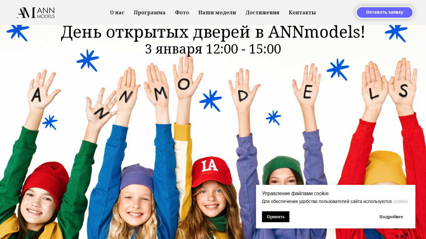 | AI-анализ | The website ANNmodels.by is dedicated to a modeling agency and school. It offers information on the agency's program, photography sessions, and contact details to leave a request for joining the modeling group. The site also mentions open days for visitors to meet the team and learn about the agency's rules and operations. The agency, which has over 12 years of experience in Belarus, provides photo shoots and the creation of working model portfolios, as well as free listing on their website. They have authoritative programs tailored to the evolving modeling industry, access to a private Telegram channel for castings, and no commission on model earnings. Discounts on agency services range from 10 to 100% based on season results, and there are special discounts for children with disabilities and multiple models from one family. The site includes information on portfolio evaluations and personal administrators for |
