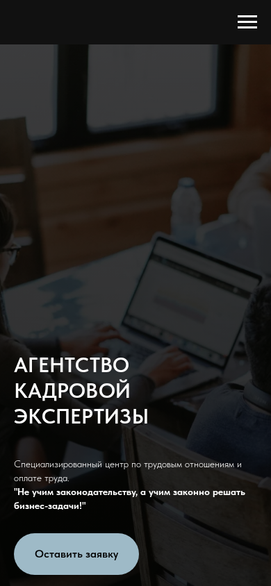| AI-анализ | --- This online resource, titled "АГЕНТСТВО КАДРОВОЙ ЭКСПЕРТИЗЫ" (Personnel Expertise Agency), is a specialized center dedicated to labor relations and wage payment issues. The description emphasizes their expertise in providing legal and effective business solutions, rather than merely teaching the law. Visitors can submit an application for the company's services and offerings, which include expert solutions for businesses, consulting, auditing, support, and training. The team consists of experienced professionals who not only have theoretical knowledge but also practical experience, as evidenced by their publication of articles, conference presentations, and consultations. The company provides a personalized approach, working closely with clients to understand their business processes and find optimal, legal solutions. The comprehensive range of services covers all aspects of labor relations and wage payment, including consulting, auditing, support |