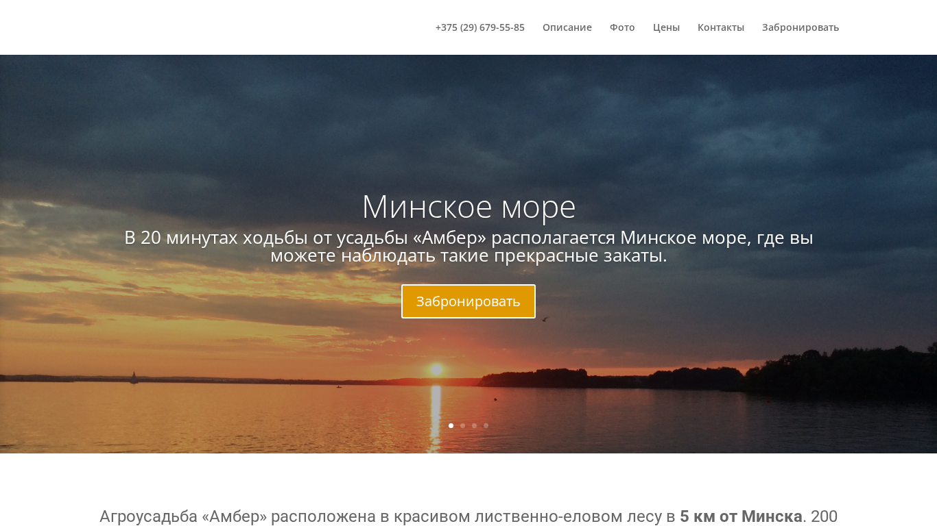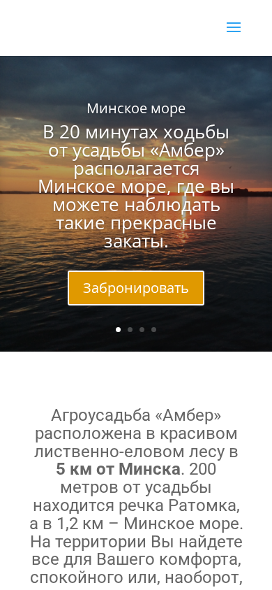 | SEO-описание | Аренда агроусадьбы "Амбер", 4 уютных коттеджа. Минское море в 20 минутах ходьбы. До Минска - 5 км. Трансфер в/из аэропорта. Бронируйте! |