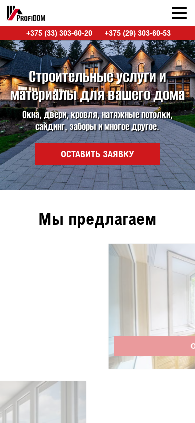 | AI-анализ | This website offers construction services and materials. The company 'ProfiDom' has extensive experience in comprehensive exterior and interior fitting of various types of buildings (residential and cottage homes, administrative buildings). The company guarantees high-quality repair and construction work, takes into account client preferences, and works on client projects as well as designs their own. The company has built a reputation over the years as a reliable contractor and supplier of building materials. A team of qualified specialists allows for quick and high-quality execution of any orders. The main priority is the reputation, as it has been built up gradually over the long term. The company ensures that every client's interests are fully met. It strives to offer maximum affordability for clients while maintaining consistently high service quality. Cooperation occurs in close collaboration with the client. The company puts in maximum effort to bring all client ideas to life, taking into account their requests and desires, resulting in |