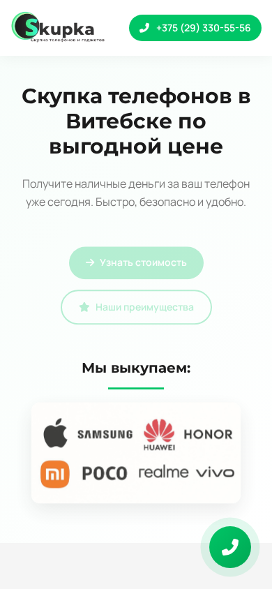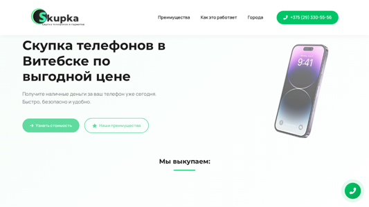 | AI-анализ | The portal vitebsk.skupkatelefonov.by is a phone buying and selling platform for residents of Vitebsk, Belarus. It offers benefits such as quick, safe, and convenient transactions. Users can sell their phones in the city by contacting the platform through phone number +375 (29) 330-55-56. The website purchases a range of mobile phones, including Samsung, Apple, Xiaomi, POCO, Honor, and Huawei models, and provides instant cash payments upon inspection by a specialist. The process involves calling or messaging the platform with the phone model and condition, receiving a preliminary price offer, and arranging a meeting with a courier for pickup and payment. The website does not provide information on the specific advantages of choosing their service over competitors, but states that they offer higher prices due to direct purchases and the |