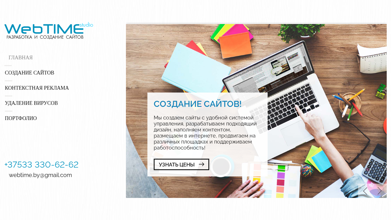| Название / Заголовок | Создание сайтов в Кобрине. Студия WebTime - создание сайтов в Кобрине, настройка контекстной рекламы, чистка сайтов от вирусов. - Создание сайтов в Кобрине. |