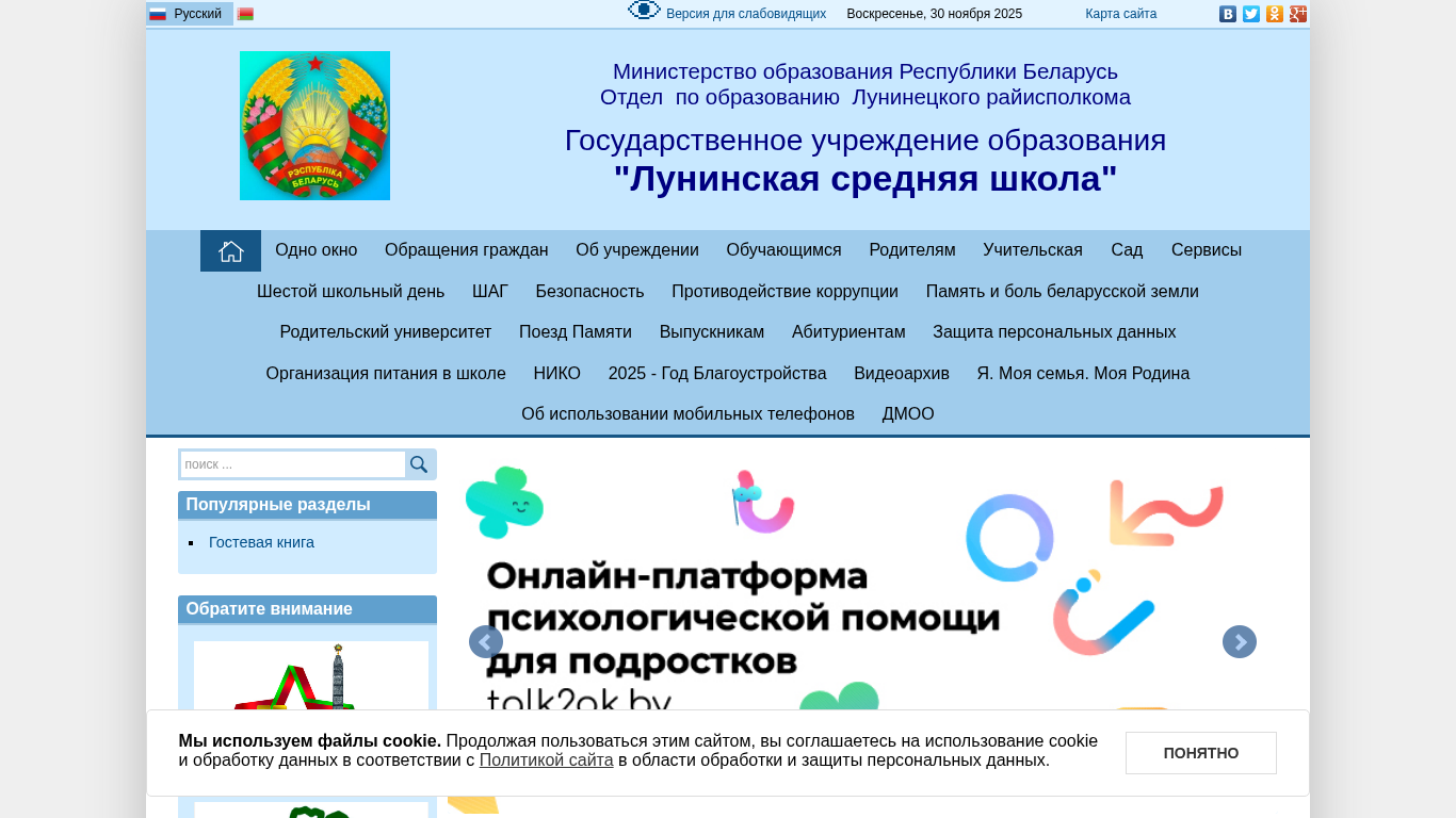 | AI-анализ | The web project "Лунинская СШ" (Lunin School) is a Belarusian .BY domain dedicated to a secondary educational institution in Luuninec region. The title and description of the site reveal it as a school website. The keywords include words related to education, school, and classes. The top_words suggest that the site offers detailed information about the school, news, and classes. The site uses cookies and is compliant with the Republic of Belarus' education department. The site has a map, RSS feed, and various services for students and parents. The site has sections for school events, news, and a guestbook. It also includes information about the school's administration and contacts. The site appears to be designed for students, parents, and staff of the school, and offers various resources and services related to education and school life. |