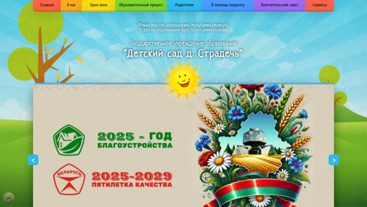 | AI-анализ | The portal "Детский сад д. Страдечь" is a government educational institution website dedicated to a kindergarten in the village of Stradech'. The site provides information about the kindergarten's history, leadership, pedagogical staff, special permission, objectives, admission procedures, policies on data processing, news, and contact details. It also includes information on the educational process, organizational and methodological activities, and various services for parents and children. The site features a rating evaluation system, a schedule for administrative work and public reception, and a section for popular inquiries. Additionally, there are sections on educational requirements, safety rules, and teacher guidelines. The kindergarten offers educational services on a fee-paying basis and has a parents' council and consulting services for parents. The site is operated under the Ministry of Education of the Republic of Belarus and the Brest Regional Executive Committee. |