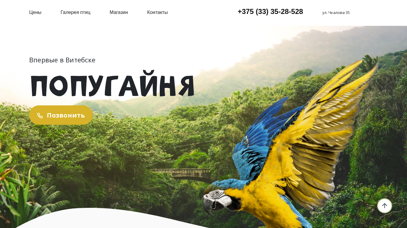 | Адрес | Цены, Галерея птиц, Магазин, Контакты, +375 (33) 35-28-528, ул. Чкалова 35 |