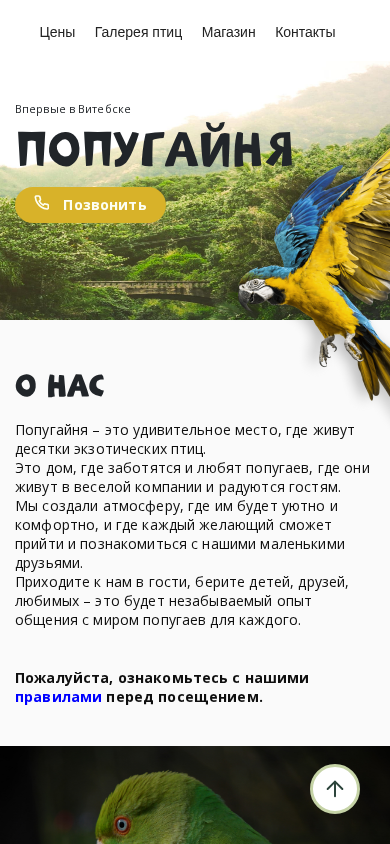 | AI-анализ | This online resource, titled "Popugainya," is a website dedicated to exotic birds, specifically parrots. The description mentions various bird species, such as the monk parakeet, Amazon parrot, and the budgerigar (araatinga), emphasizing their unique characteristics and abilities to speak. The website seems to offer a place where visitors can interact with these birds. The language used in the description suggests a friendly and welcoming atmosphere. The domain name, "vitebsk.popugainya.by," indicates that the website is based in Vitebsk, Belarus. |