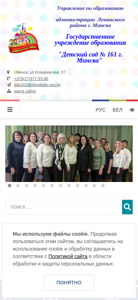 | AI-анализ | The portal "Детский сад 161" is a website for the state educational institution "Детский сад № 161 г. Минска," located in Minsk, Ulitsa Kosyrevskaya, 37. The site provides information on administrative procedures, contacts, and services offered by the kindergarten, including electronic application submission, inquiries, and support for vulnerable children. The site also features information on the management of the education administration in Leninsky District, Minsk, as well as contacts for local deputies and services for the disabled. The kindergarten's policies on data protection and admission are outlined, along with information on the leadership team, achievements, and various fees for educational services. The site includes a photo gallery and information on the kindergarten's history and community involvement through partnerships with organizations such as "Белая Русь" and |