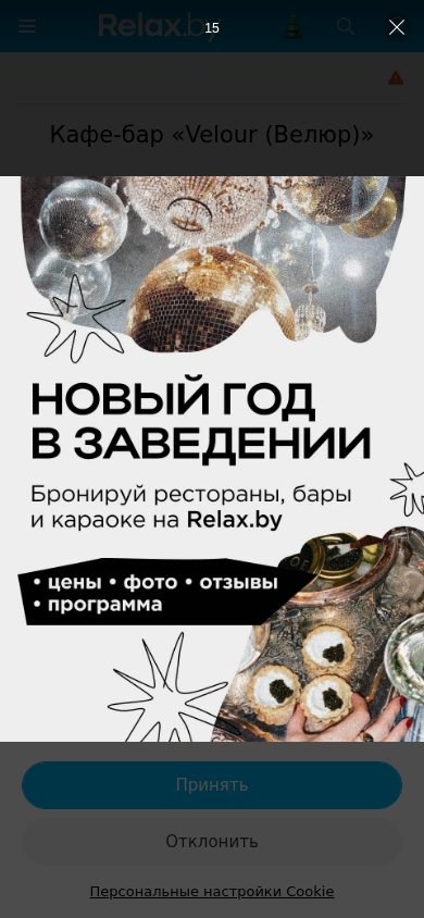| SEO-описание | Кафе-бар Velour (Велюр) в Минске – ⚡меню с ценами и фото, ⚡отзывы посетителей, адрес на карте, ✍бронирование столика онлайн на Relax.by. |