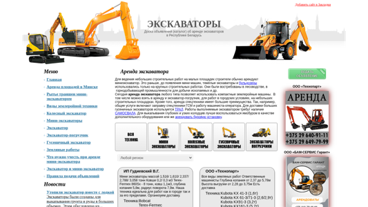 | AI-анализ | This website is an advertisement platform for excavator rentals in Belarus. It offers services for renting excavators, including excavator-loaders and mini excavators. The website also provides information on digging trenches for gas, water, sewage, and septic systems, as well as land leveling and foundation work. The top keywords for this site include 'rental of excavators', 'excavator services', 'mini excavator', and 'digging trenches'. The site includes a catalog of excavator rental listings in Belarus, as well as information on different types of excavators and the considerations for renting a mini excavator. There are also news articles and videos related to excavators and excavator rentals. |