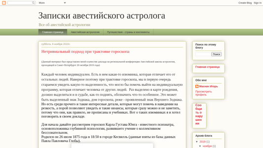 | Адрес | Просмотреть профиль, Сообщить о нарушении, Архив блога, ▼, 2019, (1), ▼, ноября, (1), Нетривиальный подход при трактовке гороскопа, ►, 2018 |