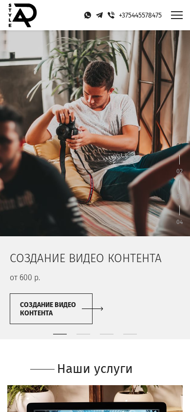 | AI-анализ | --- The portal Arstyle.by is a Minsk-based advertising agency offering website creation, promotion, photo and video equipment sales, and video content production. Services include website creation starting from 1,400 Br, photo production starting from 250 Br, and video content creation starting from 600 r. The team provides comprehensive digital solutions for businesses, bloggers, and private clients, ensuring high-quality content and reliable equipment. Arstyle.by's expertise covers the entire process, from website development to professional video production. |