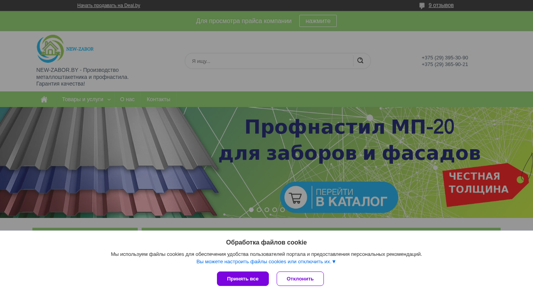 | AI-анализ | This online resource is a company website for NEW-ZABOR.BY, which specializes in the production of metal fence posts (металлоштакетник) and profiled sheets for fences and facades (профнастила). The website provides contact information, a list of products and services, and prices. The company offers a guarantee of quality for their products, including profiled sheets for fences and facades, metal fence posts, and complementary components for fences. The website also includes a catalog of products with detailed descriptions, prices, and availability. The company's contact information is provided for inquiries and orders. |
