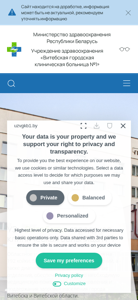 | AI-анализ | The web project "Витебская городская клиническая больница № 1" (Vitebsk City Clinical Hospital No. 1) is a healthcare institution website undergoing development. The Ministry of Healthcare of the Republic of Belarus manages the organization. The hospital is located at 210026, Kommunisticheskaya Street, 5, in the city of Vitebsk. Contact information includes the switchboard number (8 (0212) 26-58-32) and the reception desk number (8(0212) 26-58-00). The site provides information on the hospital's structure, tasks, history, vacancies, departments (consultative cabinet, cardiology, neurology, gastroenterology, and hypobaric adaptation), clinical diagnostic laboratory, |