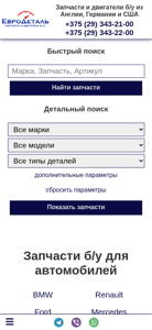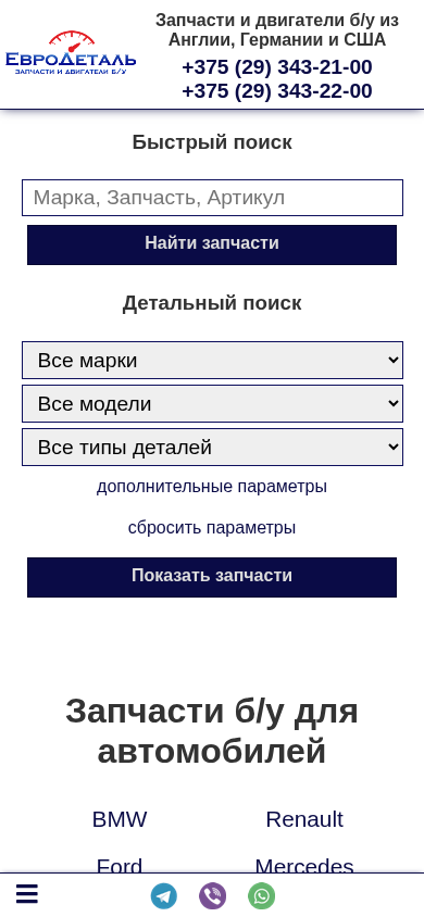 | Название / Заголовок | Евродеталь - запчасти и двигатели с небольшими пробегами из Англии, Германии и США |