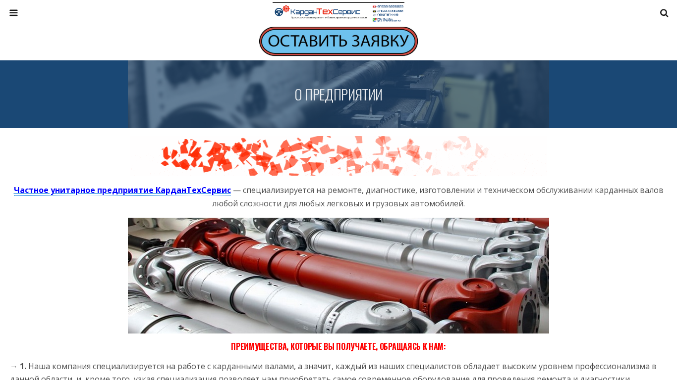 | Название / Заголовок | О ПРЕДПРИЯТИИ | КарданТехСервис |