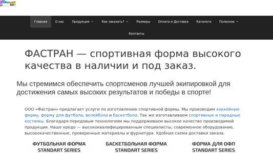| AI-анализ | This online resource is a producer of custom sportswear under the brand name FASTRAN. The website offers design development, pricing from the manufacturer, and a flexible delivery system to all regions. Key products include hockey, football, basketball, volleyball, and sports uniforms, as well as jerseys, BIP, and various sizes. The company specializes in creating high-quality sports equipment for athletes to achieve top performance and victory in sports. FASTRAN provides services for manufacturing sportswear, including hockey uniforms, football uniforms, volleyball uniforms, and basketball uniforms. They also produce sports and parade costumes. The company uses advanced technologies to ensure the high quality of its products. The motto is "highly qualified specialists, modern equipment, high-quality and proven materials, and fittings." The delivery system is convenient, and the company offers detailed consultations when choosing materials |