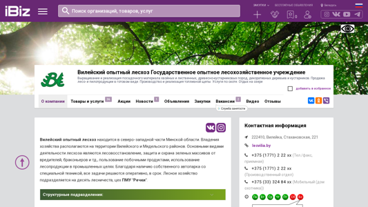 | AI-анализ | This online resource is a state experimental forest farm, specializing in the cultivation and sale of seedling material for coniferous and deciduous trees, shrubs, and decorative plants. They also sell forest and milled products in ready form, produce and sell firewood pellets, and offer hunting services and recreation on a lake. The farm is located in the northwest of the Minsk region, with territories in the Vilnius and Mialetsk districts. The main activities of the farm include forestry, protection and conservation of forests against pests, poachers, and other threats, and the use of forest products in industrial applications. With their own vehicle fleet and specialized equipment, tasks are completed efficiently and on time. The forest farm consists of ten forestry divisions, including the experimental and production forestry unit "Rechki." Structural units: Vilnius Experimental and Production Forestry, |