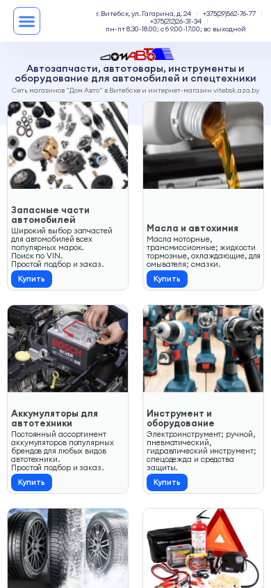 | Адрес | автотовары, инструменты и оборудование для автомобилей и спецтехники, Перейти к содержимому, г. Витебск, ул. Гагарина, д. 24 |