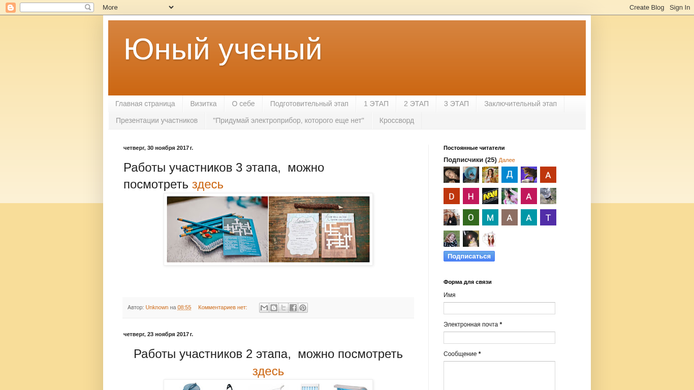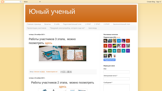 | AI-анализ | The web project "Юный ученый" (Young Scholar) is a blog featuring information about a competition for inventing a new electrical appliance. The competition has several stages, and the results are published on the site. Participants can share their work on social media platforms like Facebook and Pinterest. The blog also allows visitors to subscribe and receive updates via email. The competition began in 2017 and consists of three tours, with the first tour taking place from November 13 to 20, the second tour from November 20 to 25, and the third tour from November 28 to 30. The results of the competition were announced on December 1, 2017. The blog was last updated on October 25, 2016, with an invitation for people to subscribe. |