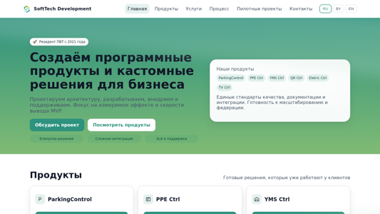 | SEO-описание | SoftTech Development: программные продукты и разработка на заказ. ParkingControl, PPE Ctrl, YMS Ctrl, QR Ctrl, Eletric Ctrl, TV Ctrl. |