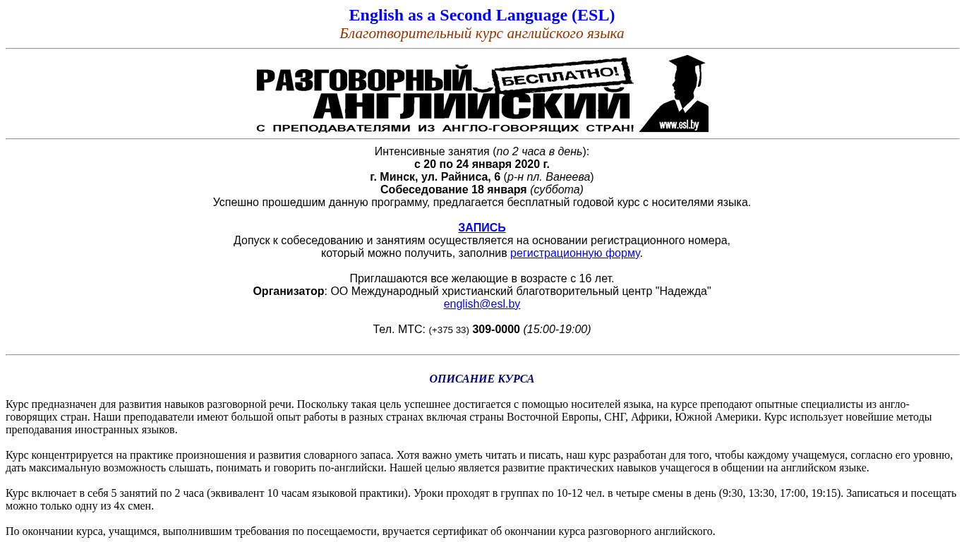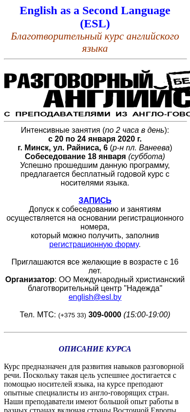 | Название / Заголовок | English as a Second Language (ESL) - Minsk |