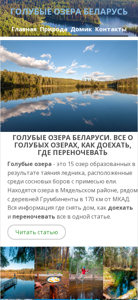 | AI-анализ | The web project "Golubye Ozero Belarus" is an informational website dedicated to the famous Blue Lakes of Belarus. The site covers information on the location of the lakes, accommodation, and excursions. There are 15 blue lakes situated in Mialelsk region, near the village of Grmobinenty, which is 170 km from MKAD. The site features articles on how to reach the lakes, where to stay, and how to book excursions. Additionally, there is information on an agrotourism farm 'Vozle Golubyh Ozer,' offering a comfortable two-story house with historical significance. The site also mentions an eco-trail on the Golubye Ozero, which is the most visited ecological trail in Belarus. The domain name is golubyeozerabelarus.by |
