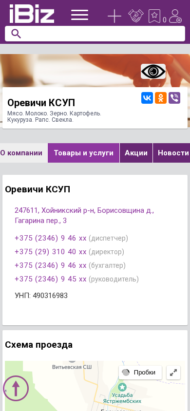 | Название / Заголовок | Оревичи КСУП - Мясо. Молоко. Зерно. Картофель. Кукуруза. Рапс. Свекла.. 247611, , Борисовщина д., Гагарина пер., 3 |
