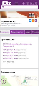 | AI-анализ | This online resource is a website for Oreviчи KSUP, a company located at Борисовщина д., Гагарина пер., 3 in the Hoynik district of Belarus. The website provides information on the company's products and services, which include meat, milk, grain, potatoes, corn, rapeseed, and beets. The site also features contact information, including phone numbers for the dispatcher, director, bookkeeper, and head, as well as the company's Unified State Register number (УНП: 490316983). Additionally, the site includes a map showing how to get there, business hours, and a section for adding the company to one's favorites. The site is in the agriculture and farming category, with subcategories including agriculture and forestry in Hoynik. |