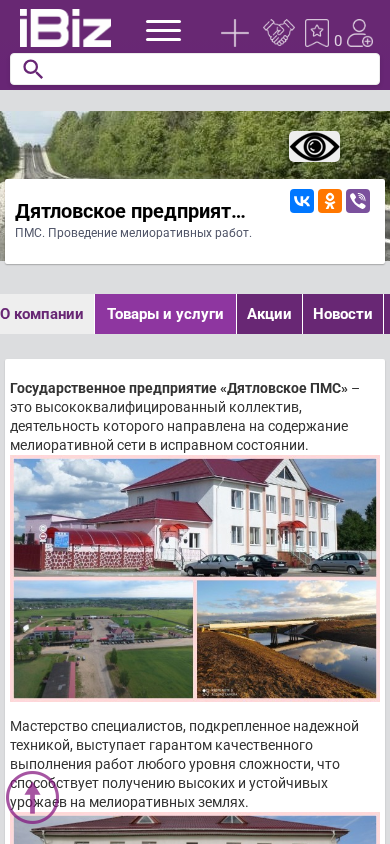 | Название / Заголовок | Дятловское предприятие мелиоративных систем Государственное предприятие - ПМС. Проведение мелиоративных работ.. 231482, , Козловщина г.п., Хмельницкого Богдана, 12 |