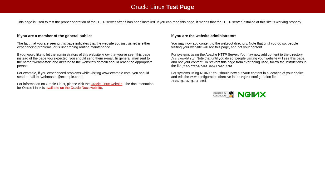 | Название / Заголовок | Test Page for the HTTP Server on Oracle Linux |