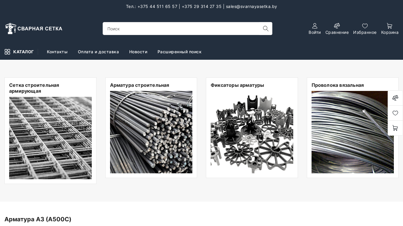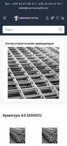 | SEO-описание | Широкий выбор строительной арматуры А3 (А500) и А1 (А240), армирующей сетки стальной и композитной. Выгодные цены на оптовые и розничные заказы. Доставка по всей Беларуси |